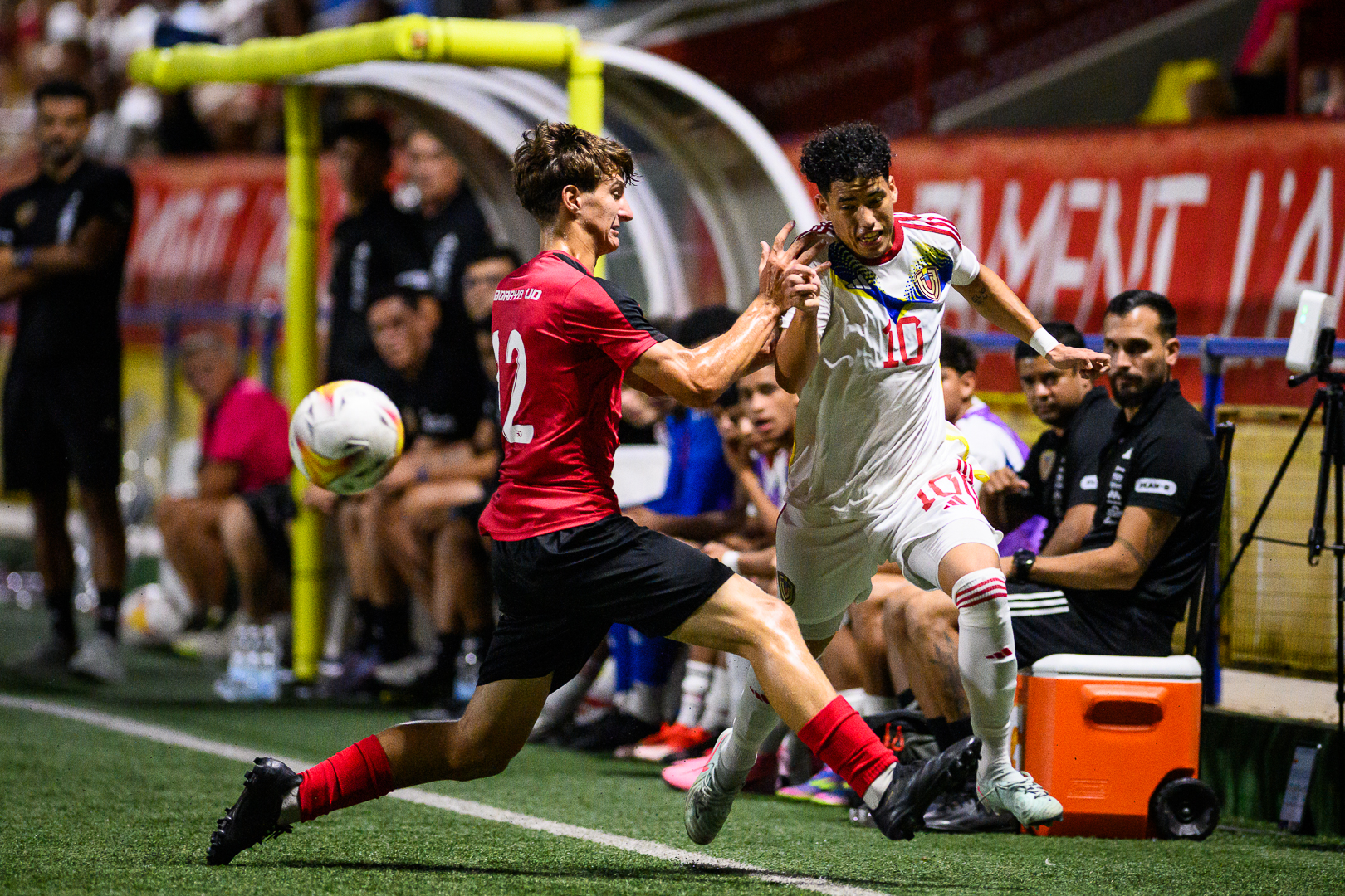 El partido comenzó sin un dominador claro. Tot i que, fueron los venezolanos los que primero lo intentaron con un disparo lejano de Pereira (10). Ambos equipos mostraban sus cartas: el Alboraya esperaba su oportunidad agazapado y el combinado venezolano apostaba por dominar. I , poc a poc, los ayer visitantes se hacían con el control del esférico. Los pupilos de Oswaldo Vizcarronco son uno de los combinados que mejor “toque” ha demostrado en los partidos de la fase de grupos.