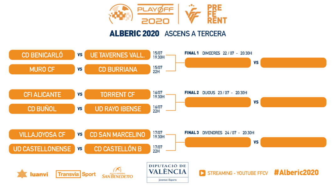 Puedes seguir en directo la emisión de todos los partidos del play off de ascenso a Tercera División por el canal Youtube de la Federació de Futbol de la Comunitat Valenciana, los primeros partidos comienzan hoy miércoles y concluirán con las finales que se disputarán la próxima semana.