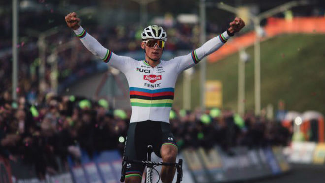 Van der Poel, neerlandés nacido en Amberes (Bélgica) hace 26 años, nieto de Raymond Poulidor e hijo de también un campeón de mundo de ciclocrós (Adrie van der Poel), ganó este pasado fin de semana en Ostende con con autoridad su cuarto otro mundialista y lo hizo con 37 segundos de ventaja sobre su gran adversario, Wout van Aert -campeón en 2016, 2017 y 2018-, y ya 1:24 minutos sobre Toon Aerts, que completó el podio por tercer año consecutivo.